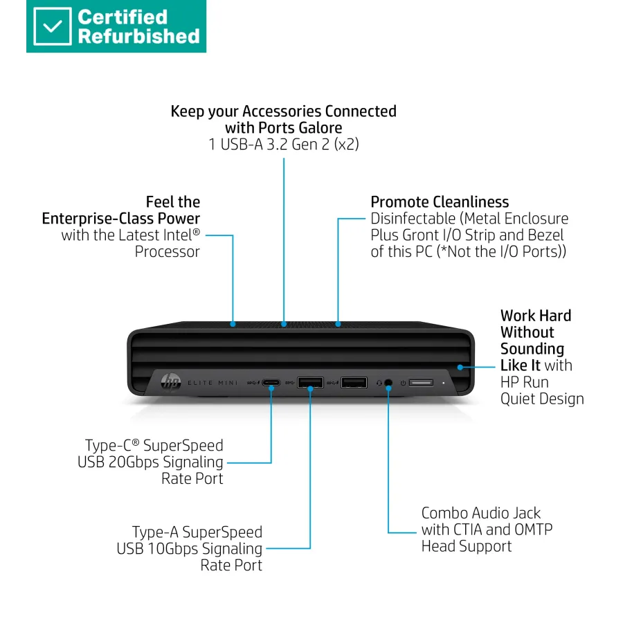 RENEW SILVER HP Elite 800 G9 Mini - i9-14900, 32GB, 1TB SSD, Win 11 Pro, 1 years