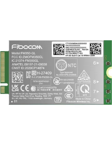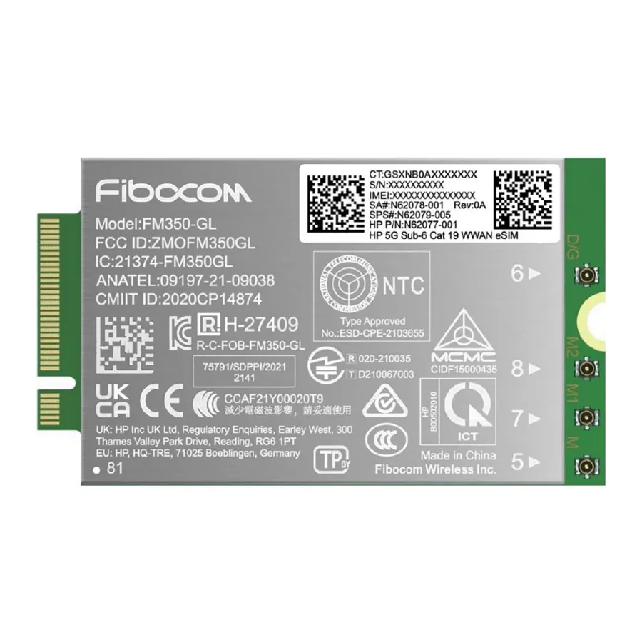 HP 5G Modem m.2 WWAN 4G/5G Sub-6 GHz FM350-GL Mobile Broadband Cellular (compatible with WWAN-ready EliteBook 830 835 840 845 860 865 1040 G11, x360 G11, ZBook Firefly Fury 14 16 G11 G11A)