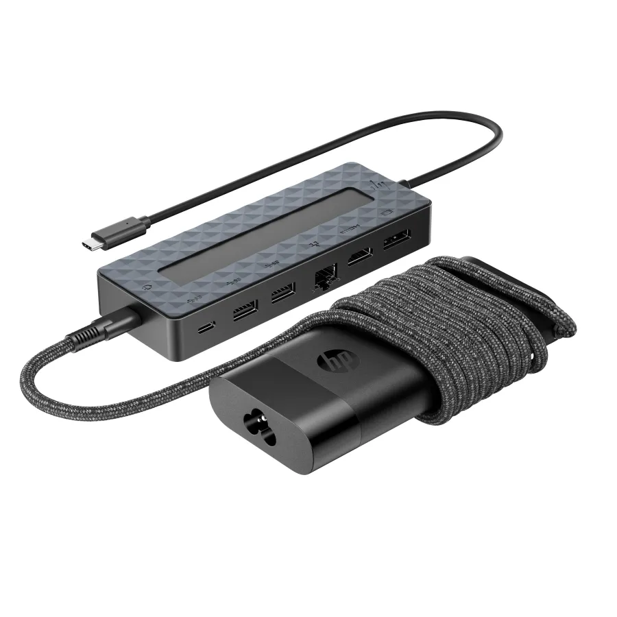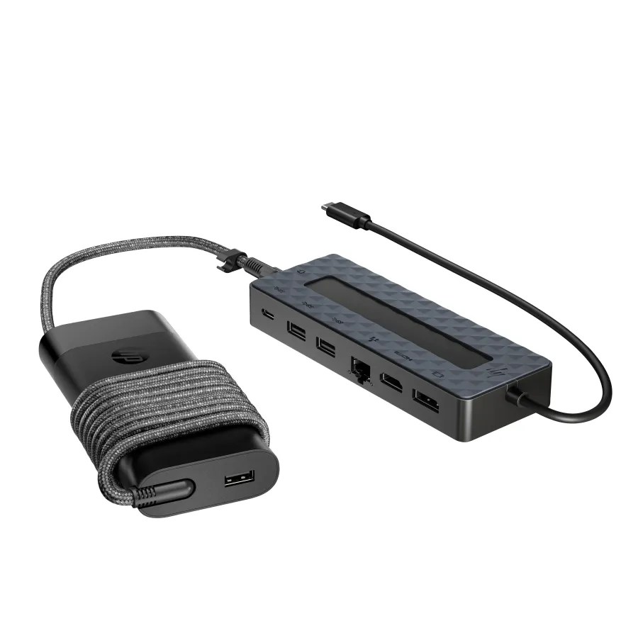 HP Universal USB-C Multiport Hub with 65W Power Adapter Notebook Charger - 2x USB-A, 2x USB-C(65W/Data), DisplayPort/HDMI, RJ-45, 1 year